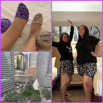 I was a little worried that we wouldn't be able to go to all of our planned shops because I underestimated how far we'd have to drive between each one and how awful Texas traffic is. Lacey reminded me that there is nothing we can do about it, so stressing is futile. To unwind, we worked on our current crochet project. Didn't make too much progress on our socks but they're coming along. ๐